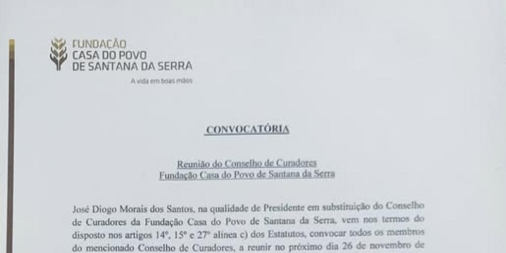 A próxima reunião do Conselho de Curadores terá lugar no dia 26 de novembro, às 17h30, nas instalações da Fundação Casa do Povo de Santana da Serra.